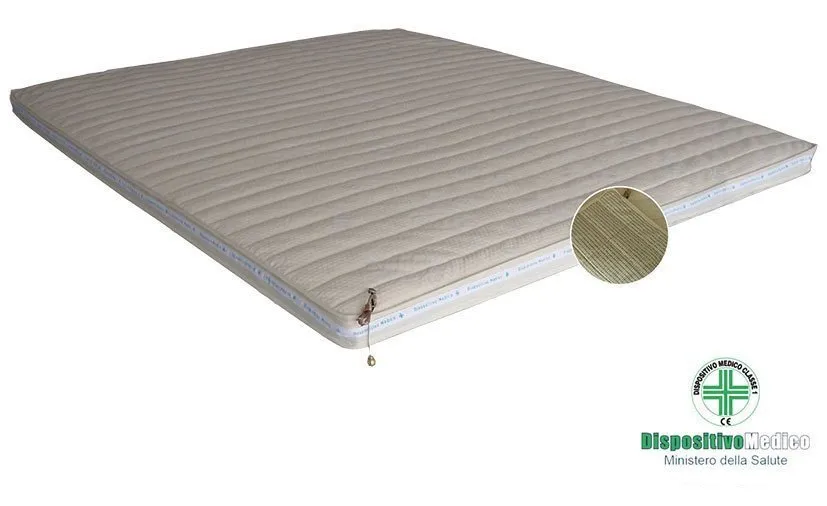 The Bioenergetic Massage Corrector is a mattress topper, approximately 7 cm thick, with a thermofill layer inside that corrects any misalignments in the existing mattress, optimising its performance: it positions the body in the correct anatomical position, creates a micro-massage, shields and protects it from electromagnetic radiation, and energises it with Celliant technical fibre and Biofonte minerals enclosed within it.